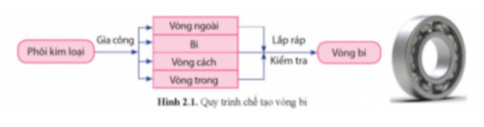 Quan sát hình 2.1 và cho biết các bước cơ bản của quy trình chế tạo vòng bi.