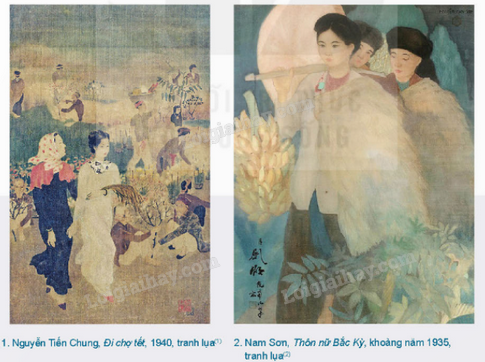 Hình 1: Đi chợ tết, bức tranh như có sự chuyển động của con người, con người là trung tâm của bức tranh.