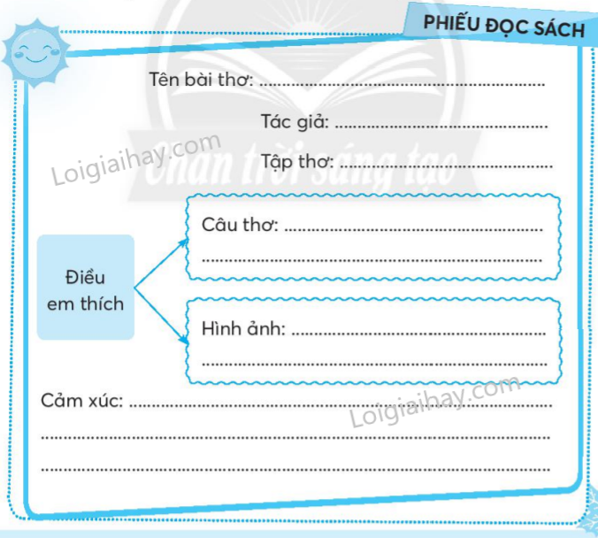 Viết vào Phiếu đọc sách những điều em đã chia sẻ với bạn sau khi đọc một bài thơ về đất nước Việt Nam.