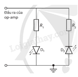 Trong hình 2.5, đầu vào V+ có ghép với cảm biến nhiệt độ và đầu vào V− của op-amp có mạch chia điện thế. Sự sáng, tối của LED có cho ta biết được vùng nhiệt độ của môi trường tác động lên cảm biến nhiệt độ hay không?