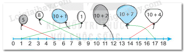 Tìm số trên mỗi quả bóng rồi nối với số tương ứng trên tia số.