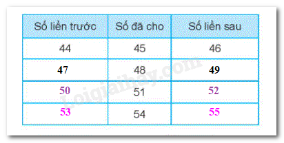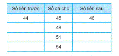 Tìm số liền trước, số liền sau của số đã cho rồi điền vào ô trống.