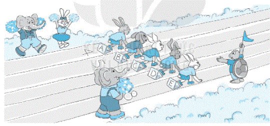 Các chú thỏ A, B, C, D, E đang chuẩn bị thi chạy. Các làn chạy được đánh số lần lượt từ 4 đến 8.