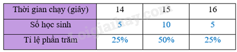 Một giáo viên dạy Giáo dục thể chất đã thống kê thời gian chạy 100 m (tính theo giây) của 20 học sinh nam và ghi lại trong bảng số liệu ban đầu như sau:
