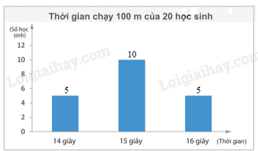 b) Biểu đồ cột biểu diễn thời gian chạy 100 m (tính theo giây) của 20 học sinh nam: