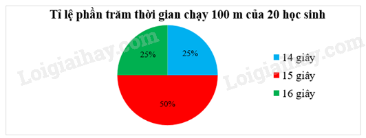 Biểu đồ hình quạt tròn biểu diễn thời gian chạy 100 m (tính theo giây) của 20 học sinh nam: