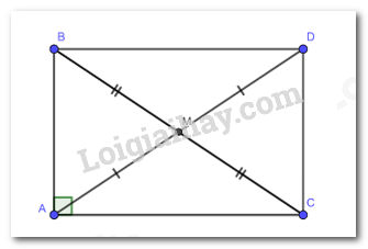 Cho tam giác ABC vuông tại A có M là trung điểm của cạnh BC. Trên tia đối của tia MA lấy điểm D sao cho MD = MA. Chứng minh tứ giác ABCD là hình chữ nhật và \(AM = \dfrac{1}{2}BC\).