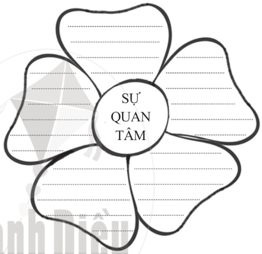 Hãy ghi những hành động em sẽ làm để thể hiện sự quan tâm đến những người thân trong gia đình vào các cánh hoa bên cạnh: