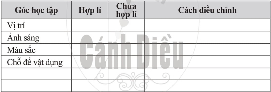- Quan sát góc học tập của em, xác định những điểm hợp lí và chưa hợp lí.
