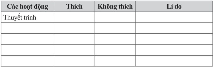 Em liên hệ với các hoạt động ở trường để hoàn thành bài tập.