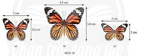 \(\frac{{4,5}}{3} = 1,5;\frac{{3,9}}{2} = 1,95\). Do đó, không tồn tại hình đồng dạng phối cảnh nào của hình 16b để bằng hình 16c. Do đó, hình 16b và hình 16c không đồng dạng với nhau.
