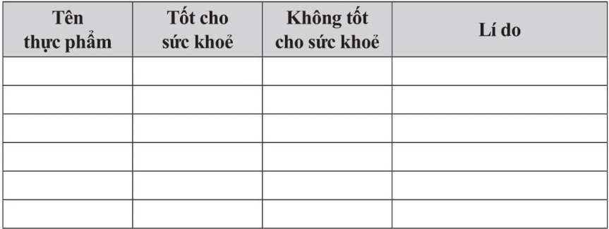 - Liệt kê những thực phẩm tốt và không tốt cho sức khỏe mà em biết và nói rõ vì sao.