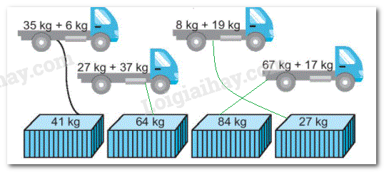 Ta có 27 kg + 37 kg = 64 kg 8 kg + 19 kg = 27 kg