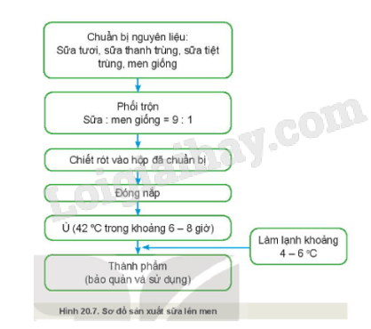 Quan sát Hình 20.7 và mô tả các bước sản xuất sữa lên men