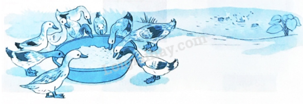 Sau hai tháng, mỗi con vịt ăn hết 3 kg thóc.