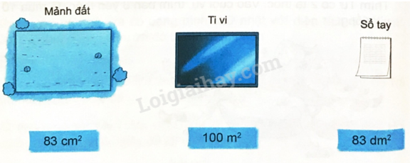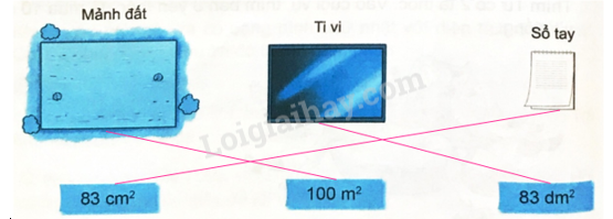 Quan sát tranh rồi nối số đo diện tích thích hợp với mỗi vật