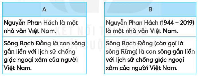 Em quan sát các câu ở hai cột và nêu điểm khác nhau.