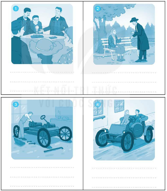Dựa vào tranh minh hoạ và nghe kể câu chuyện Nhà phát minh và bà cụ (SHS Tiếng Việt 4, tập một, trang 100), ghi lại những sự việc chính.