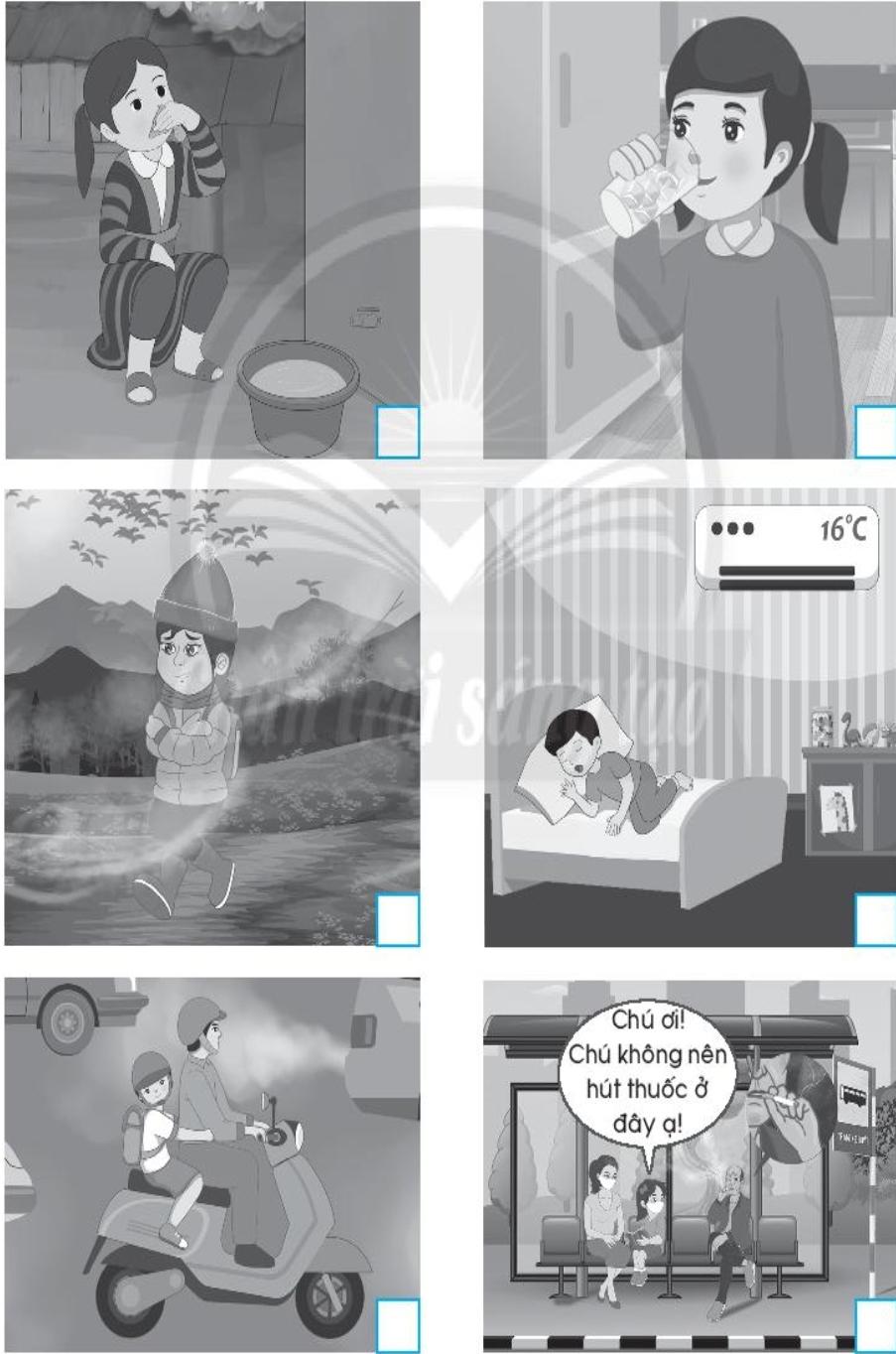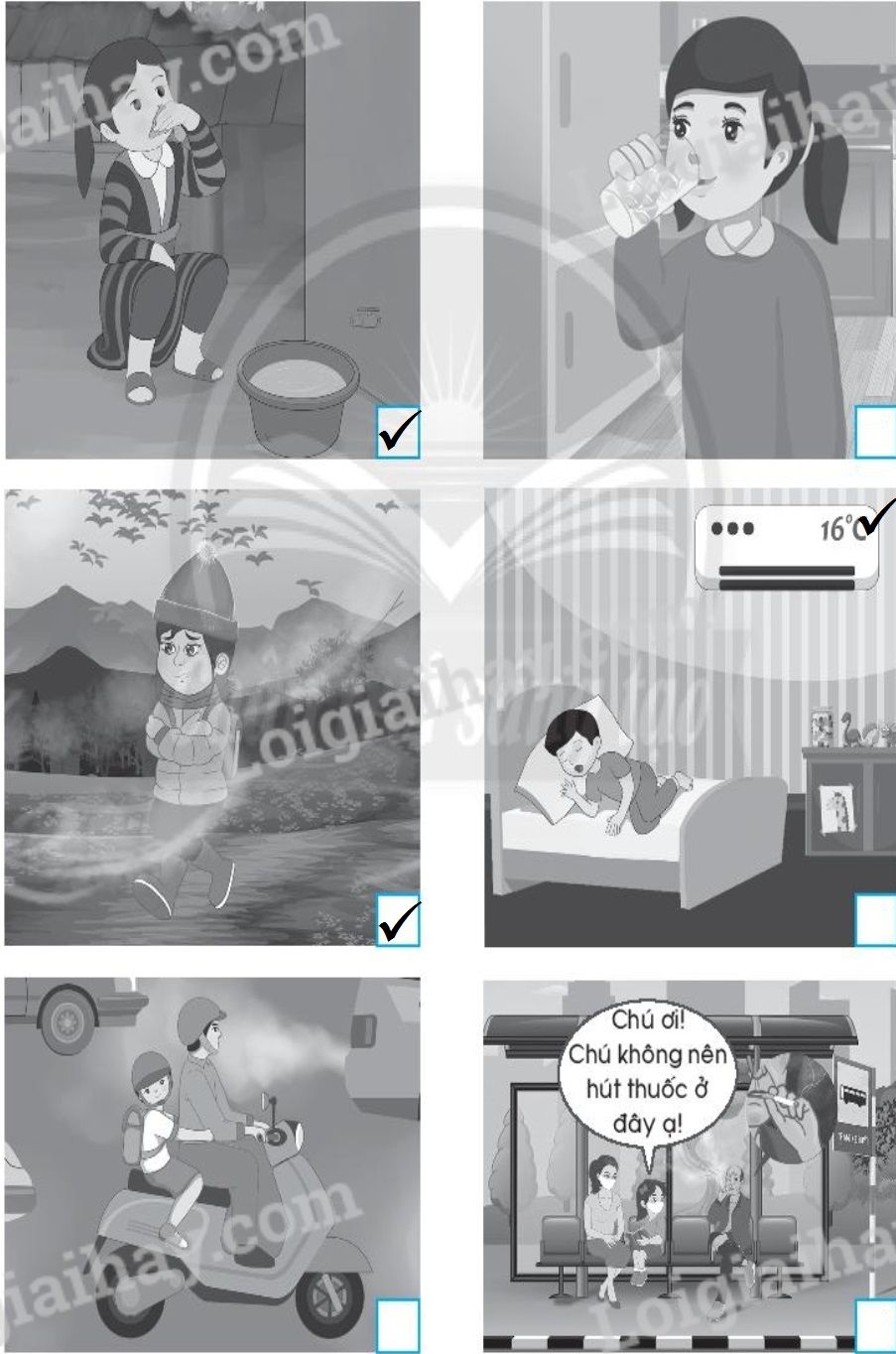Đánh dấu ✔ vào ◻ ở hình chỉ việc em nên làm để bảo vệ cơ quan hô hấp.