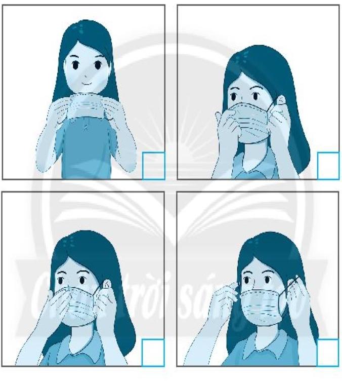 Điền số từ 1 đến 4 vào ◻ ở các hình theo quy trình đeo khẩu trang đúng cách và an toàn.