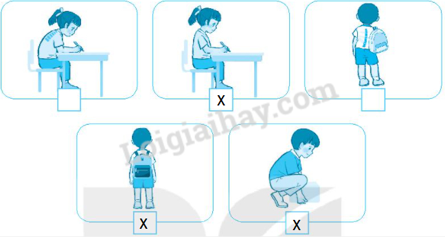 Đánh dấu x vào ô trống dưới hình thể hiện tư thế đúng.