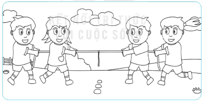Các bạn trong hình đang chơi kéo co, đây là một hoạt động có lợi cho sức khỏe.
