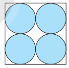 Độ dài cạnh của hình vuông bằng 4 lần bán kính hình tròn.