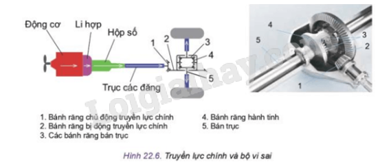 Hãy đọc mục 3 và cho biết chức năng của truyền lực chính và bộ vi sai. Hãy quan sát Hình 22.6 và cho biết các chi tiết chính của truyền lực chính và bộ vi sai.