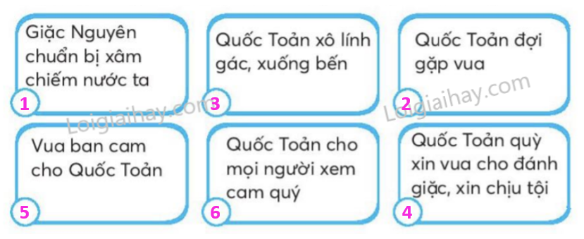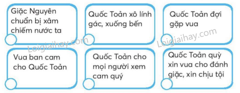 Vì sao Quốc Toản vô tình bóp nát quả cam? Xếp các từ ngữ trong ngoặc đơn vào cột thích hợp. Nối ô chữ bên trái với ô chữ bên phải để tạo câu nêu hoạt động. Sắp xếp các ý dưới đây theo đúng trình tự của bài đọc. Viết 1 – 2 câu về người anh hùng nhỏ tuổi Trần Quốc Toản.