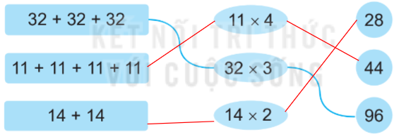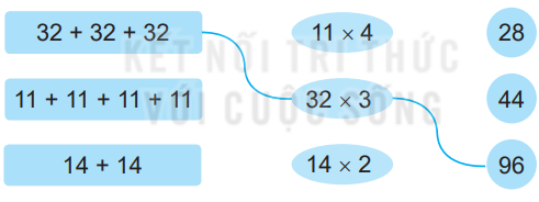Nối phép cộng với phép nhân và kết quả tương ứng.