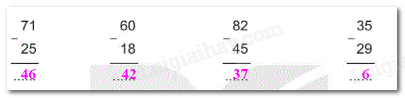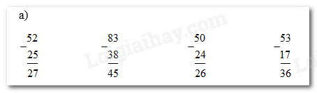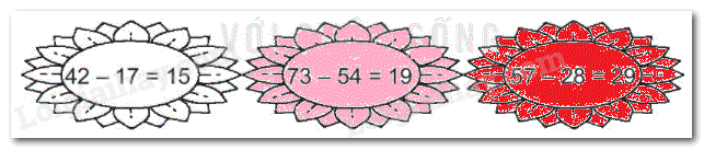 b) Ta có 42 – 17 = 25 73 – 54 = 19 57 – 28 = 29