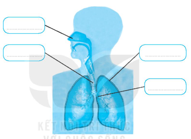 Viết tên các bộ phận của cơ quan hô hấp vào chỗ (…) ở hình dưới đây.