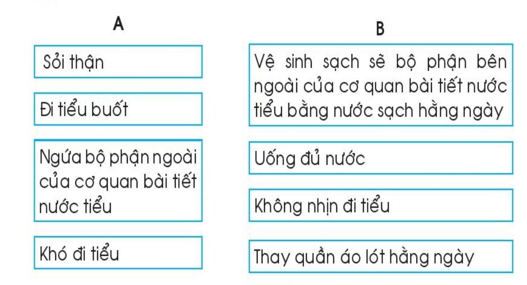 Nối một ô chữ ở cột A với một số cách phòng bệnh ở cột B.