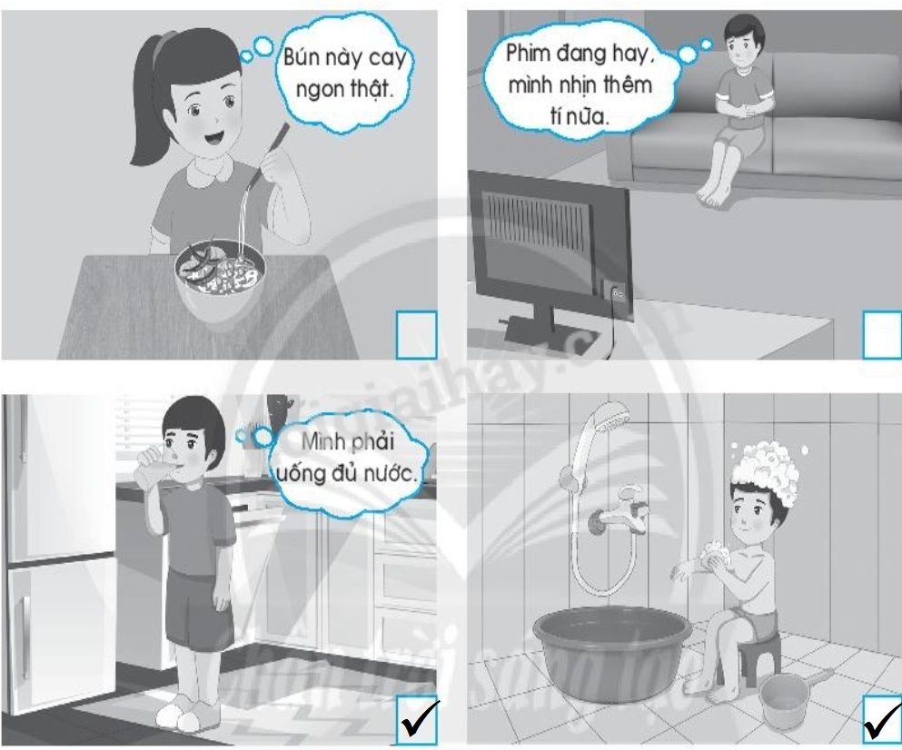 Đánh dấu ✔ vào ◻ ở hình chỉ những việc em nên làm để bảo vệ cơ quan bài tiết nước tiểu.