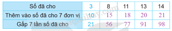 - Muốn thêm vào số đã cho 7 đơn vị ta cộng số đó với 7.