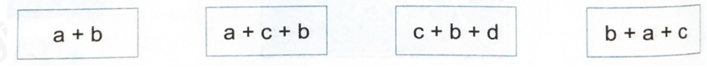 Cho biểu thức chứa chữ a + b + c. Tô màu các tấm bảng dưới đây ghi biểu thức có giá trị bằng biểu thức đã cho.