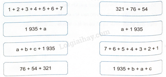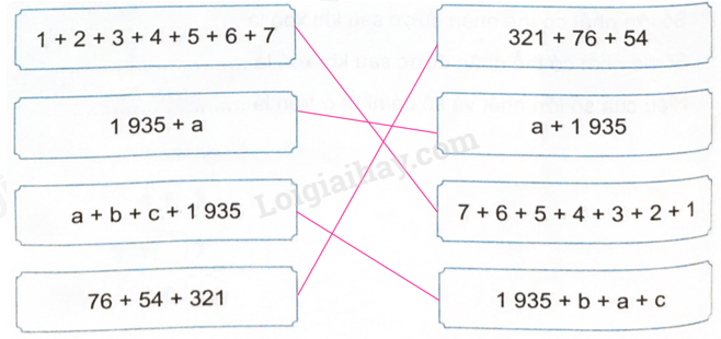 Không thực hiện phép tính, hãy nối các biểu thức có giá trị bằng nhau.