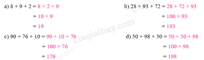 Áp dụng tính chất giao hoán: Khi đổi chỗ các số hạng trong một tổng thì tổng không thay đổi.