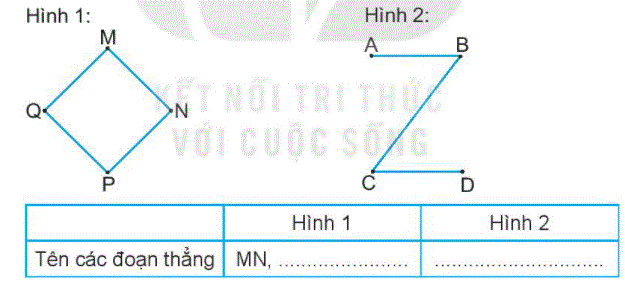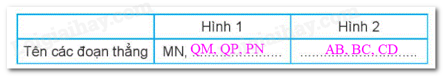 Quan sát hình, kể tên các đoạn thẳng rồi điền vào ô trống cho thích hợp.