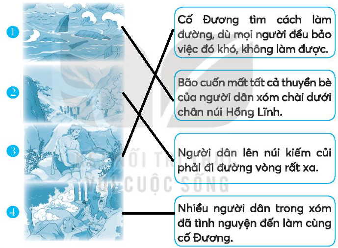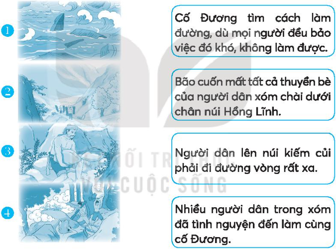 Quan sát 4 bức tranh minh hoạ câu chuyện Những bậc đá chạm mây, xác định nội dung từng tranh.