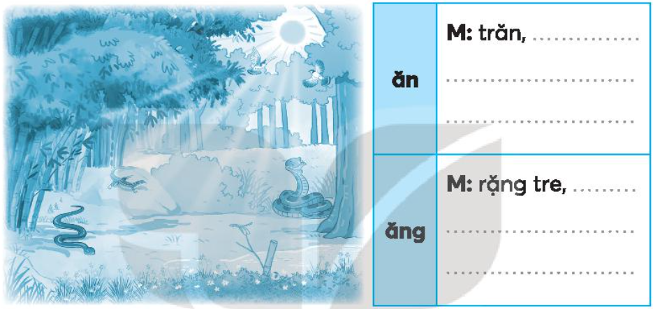 b. Quan sát tranh, tìm từ ngữ có tiếng chứa ăn hoặc ăng.