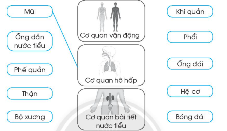 Nối các ô chữ với hình vẽ phù hợp theo mẫu.
