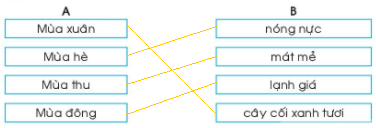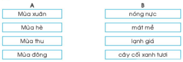 Nối một mùa ở cột A với một số đặc điểm tương ứng ở cột B.