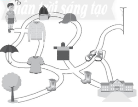 4. Nơi bạn Tú ở đang là mùa mưa, Tô màu tìm đường đi giúp Tú đến trường dựa theo những trang phục cần thiết mà Tú phải mang theo.