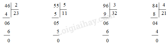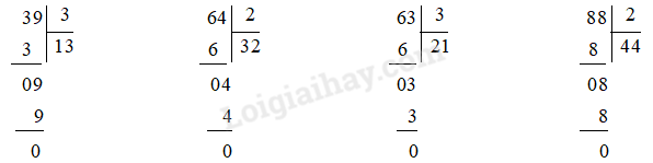 Thực hiện đặt tính rồi chia từng chữ số của số bị chia cho số chia lần lượt từ trái sang phải.