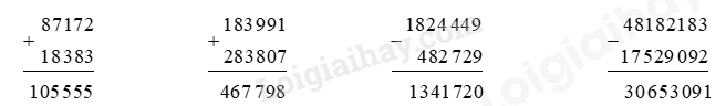 - Cộng hoặc trừ lần lượt từ phải sang trái