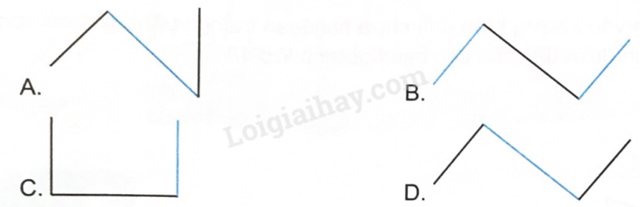 Rô-bốt vẽ đoạn thẳng màu xanh vuông góc với đoạn thẳng màu đen rồi vẽ đoạn thẳng màu đen khác vuông góc với đoạn thẳng màu xanh. Hỏi hình nào dưới đây là hình vẽ của Rô bốt?
