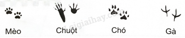 Biết mỗi con vật đi một đường khác nhau và chúng để lại dấu chân trên đường đi như sau: