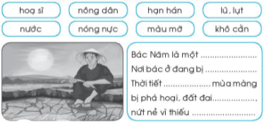 1. Nối hình phù hợp với mỗi ô chữ. 2. Chọn từ thích hợp và viết vào chỗ (...) để hoàn thiện câu chuyện về bác Năm. 3. Chúng ta có thể làm gì để hạn chế thiên tai xảy ra? Quan sát hình và viết những chữ cái còn thiếu vào ô chữ để trả lời cho câu hỏi trên. 4. Nối các chấm và tô màu để hoàn thiện bức hình sau. Đặt tên cho bức hình.