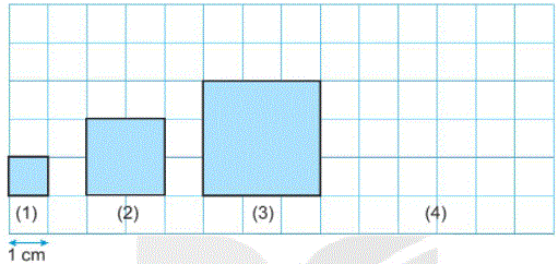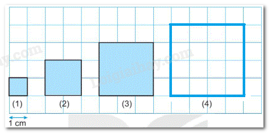 Vẽ hình vuông tiếp theo vào vị trí (4) rồi viết số thích hợp vào chỗ chấm.